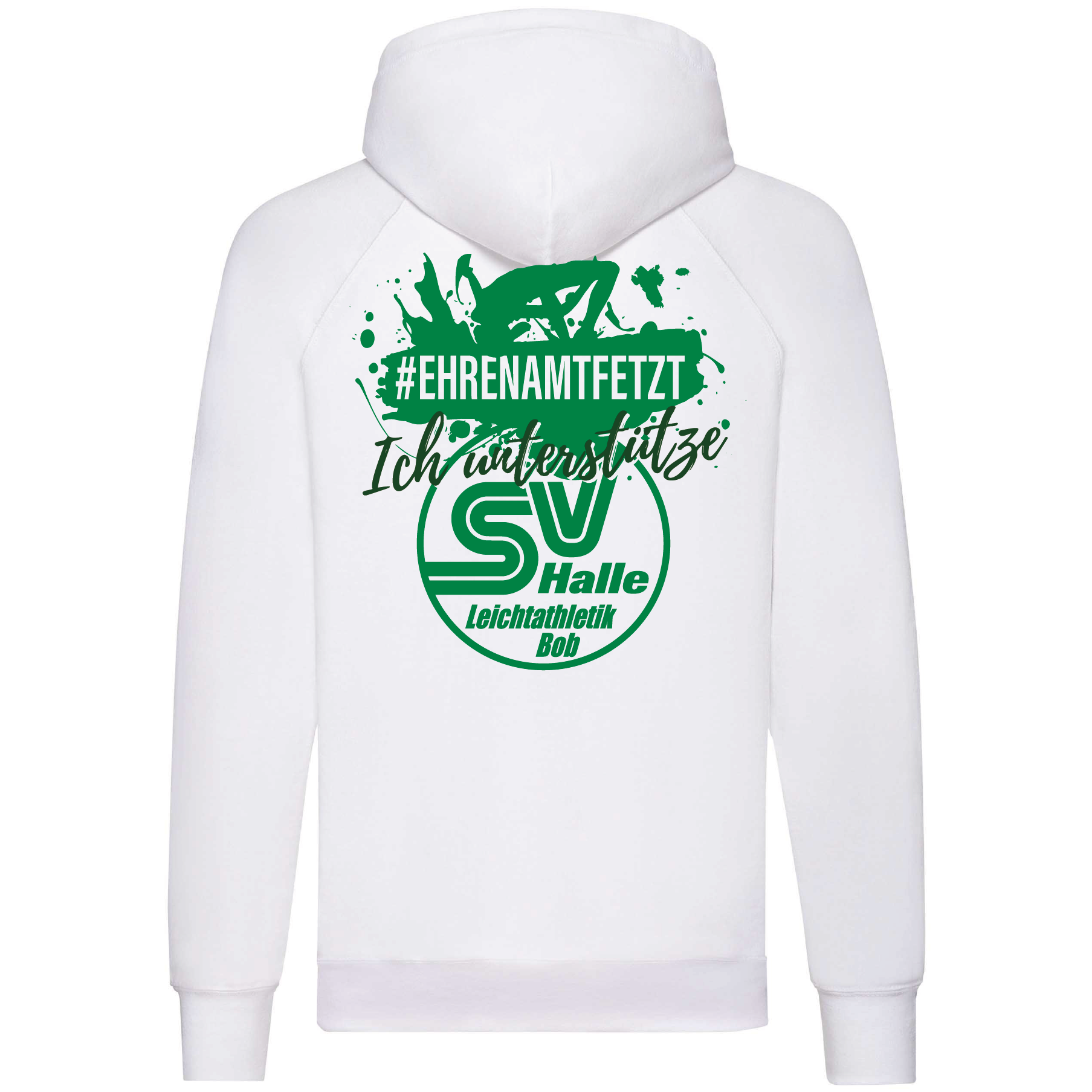 Das Design des SV Halle Leichtathletik/Bob Trainerteams in weiß. #Ehrenamtfetzt – Ich unterstütze SV Halle Leichtathletik/Bob. Stylischer Hoodie mit bester Qualität (Baumwolle) und sportlichem Tragekomfort.