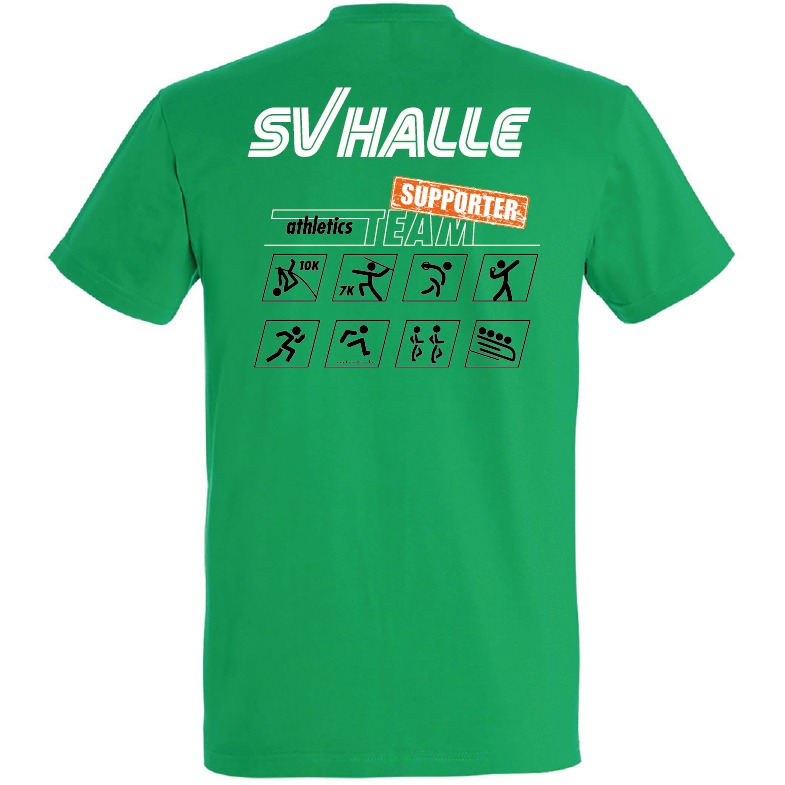 Das Design des SV Halle Athletics Teams – 2025 Edition – als Dauerbrenner in grün. Leichtes Baumwolle T-Shirt mit bester Qualität und sportlichem Tragekomfort.