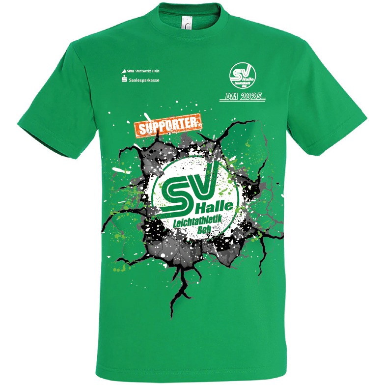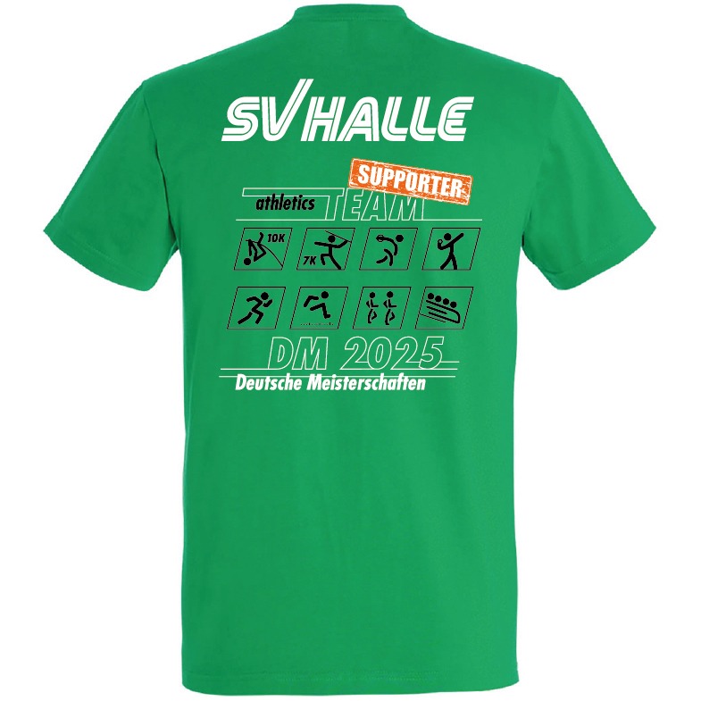 Das Design der SV Halle Leichtathletik/Bob DM Verabschiedung 2025 als exklusive Supporter-Edition in grün. Leichtes Baumwolle T-Shirt mit bester Qualität und sportlichem Tragekomfort.